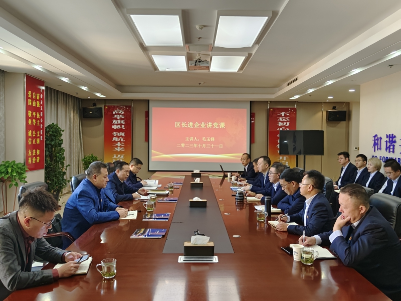 毛區長在宣講中指出要認真學習貫徹習近平總書記關于加強企業黨建工作的重要論述,進一步提高政治站位,壓緊壓實全面從嚴治黨主體責任;要堅持黨建引領,充分發揮黨建賦能作用,進一步釋放發展活力,助推企業高質量發展。